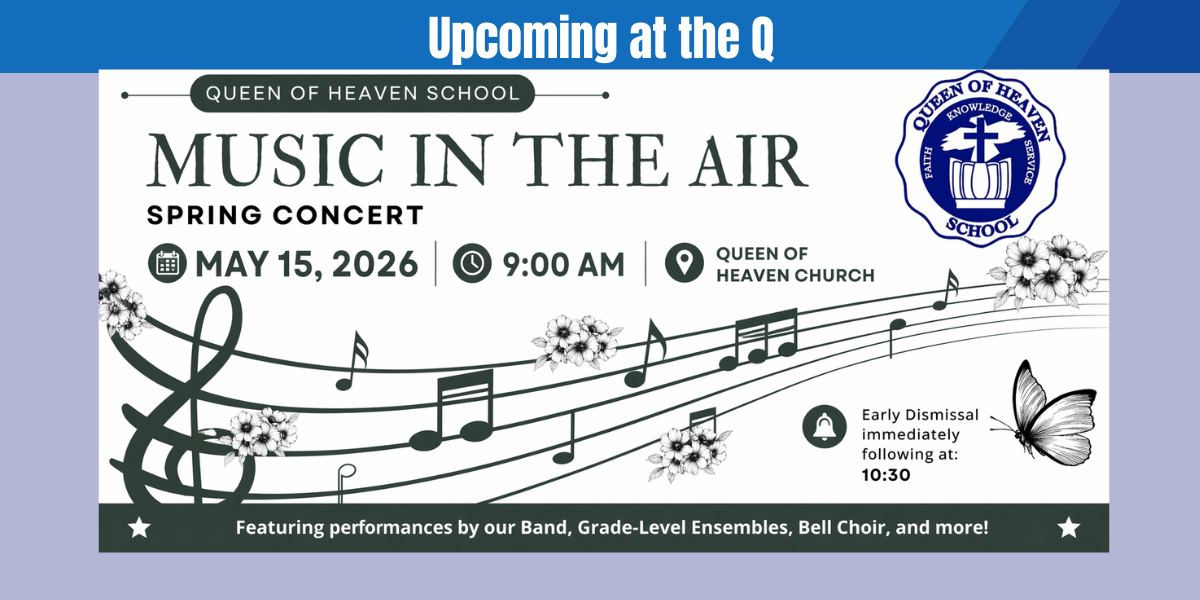 At Queen of Heaven School, we educate the whole child in a faith based, family-oriented community. Our close partnership with Queen of Heaven Parish and our active Home School Guild strengthens school spirit through academics, service, and cherished traditions, including our beloved Queen of Heaven Carnival.